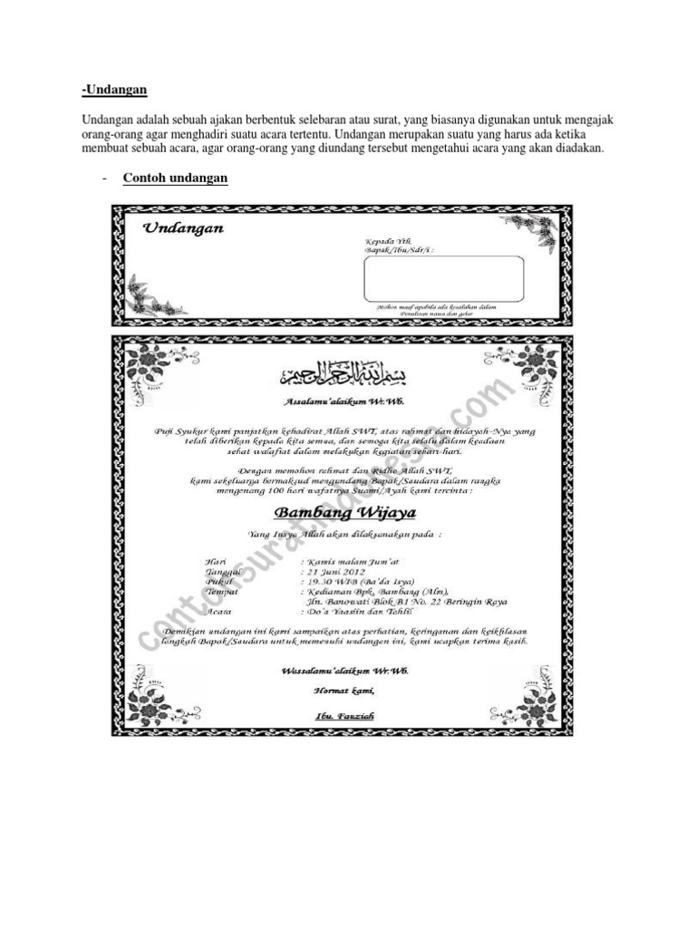 Kita akan lanjutkan pembahasan dengan mengenal beberap contoh surat undangan tidak resmi. Contoh surat undangan setengah resmi undangan arisan. Anggota karang taruna perihal : Undangan setengah resmi adalah undangan yang. Contoh kalau surat undangan resmi biasanya akan menggunakan bahasa indonesia yang baik dan benar, sedangkan untuk surat undangan non mari kita kupas tuntas tentang surat undangan.